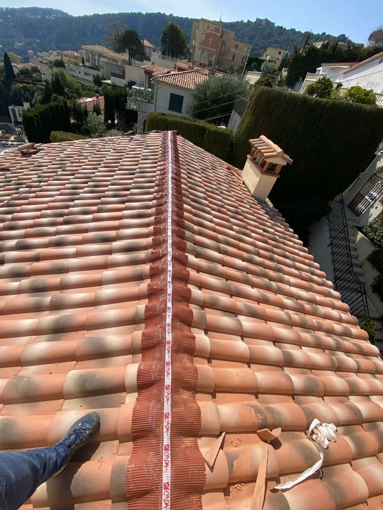 Après les réparations, les couvreurs s’assurent que le toit est étanche. Tous les éléments de finition, tels que les noues et les faîtières, sont correctement installés pour garantir une protection complète.